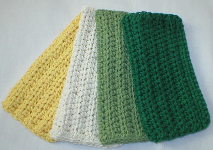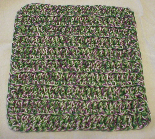 This yarn has a nice soft feel/touch to it, unlike some other brands of cotton yarn. The finished cloth is soft enough to use as a facial washcloth, yet it is still tough enough to do the job as a dishcloth. I think the softness also helps in giving it a smooth feel on the hook, allowing for “smooth” crochet action.