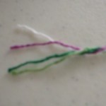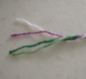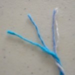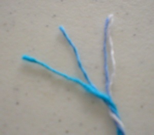 Another color that I found questionable was the turquoise. The picture in the catalog does look like a turquoise blue. However, the actual skein of turquoise that I purchased looks more like a very nice medium blue color. (See picture…Morning Sky on the left, Turquoise in the middle, Deep Sea on the right.) I really don’t see the “turquoise” in it. To truly appear “turquoise” it may need a bit more green in the dye. Again, maybe it’s just the dye lot of this skein. I’m more inclined to call my skein medium blue and not turquoise. So…if you truly need a deep turquoise yarn, this may not be it.