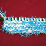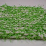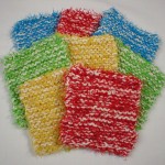 As per Red Heart’s suggestions, this yarn can be used alone or coupled with cotton yarn. A scrubbie or dishcloth made with this yarn alone has a totally unique character and feel. It is quite stretchy and has little absorbency. To me, it resembles some sort of clothing accessory [like a nice scarf] or part of a child’s toy rather than something to wash dishes with. However, THAT’S just my opinion and the next person may love using it that way.