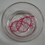 Color fast. Since it’s made with polyester I suspected it would not bleed its color. But, I tested it nevertheless. I placed a strand in hot water and let it sit for a while. No color loss at all! That’s very impressive to me, considering how much color loss there is in some of the cotton yarns! Also, I have not noticed any color loss with the one I’ve been washing dishes with for a while.